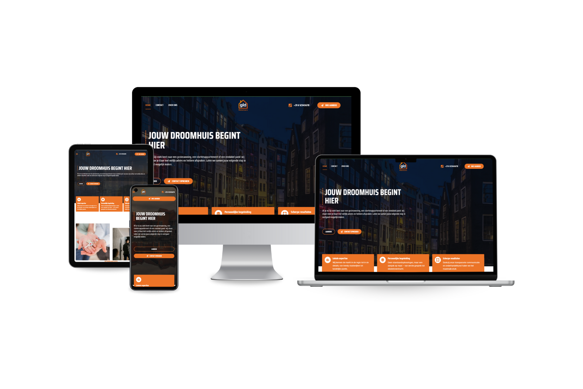 GLD Makelaars was op zoek naar een frisse, betrouwbare online uitstraling die zowel hun deskundigheid als hun persoonlijke benadering van de woningmarkt benadrukt.